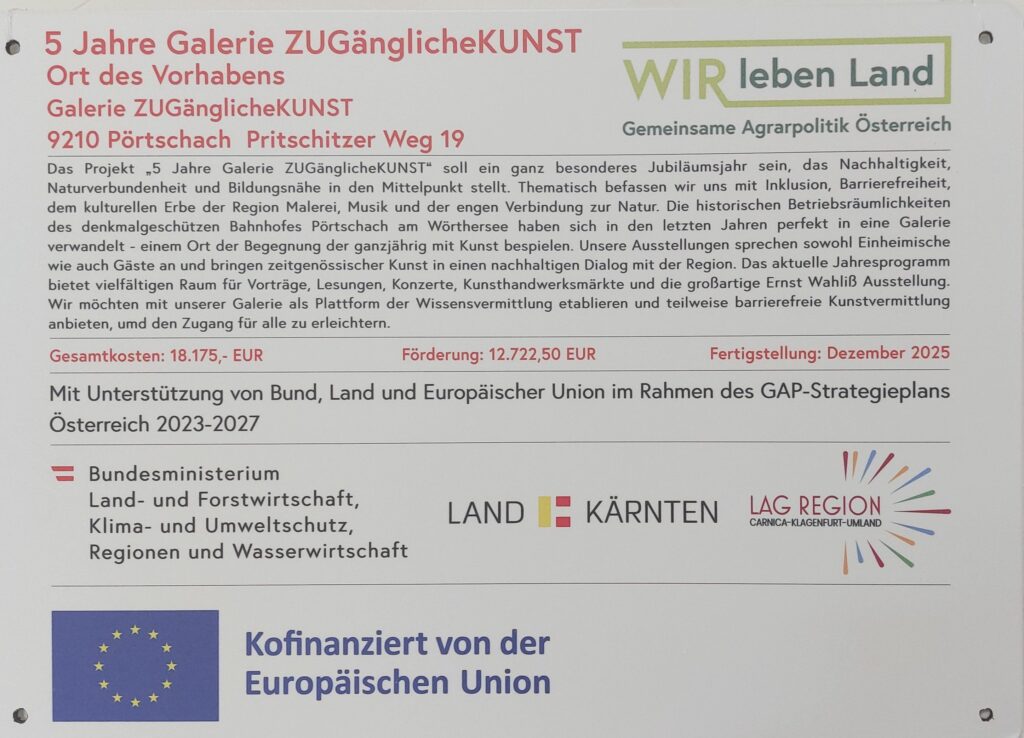 2025 fand die 5-Jahres-Galerie-Feier mit der großartigen Sonderausstellung Ernst Wahliß statt, dieses Projekt wurde vom Land und der EU gefördert.